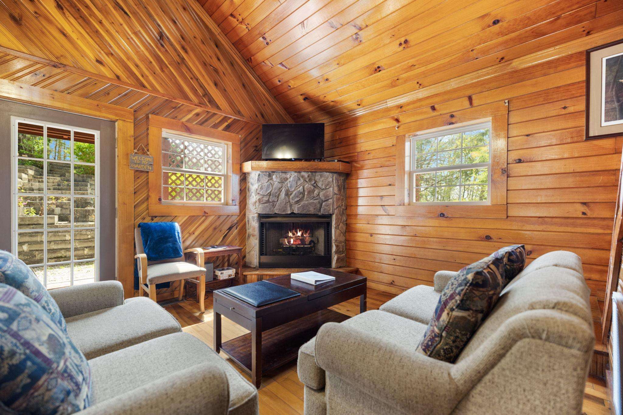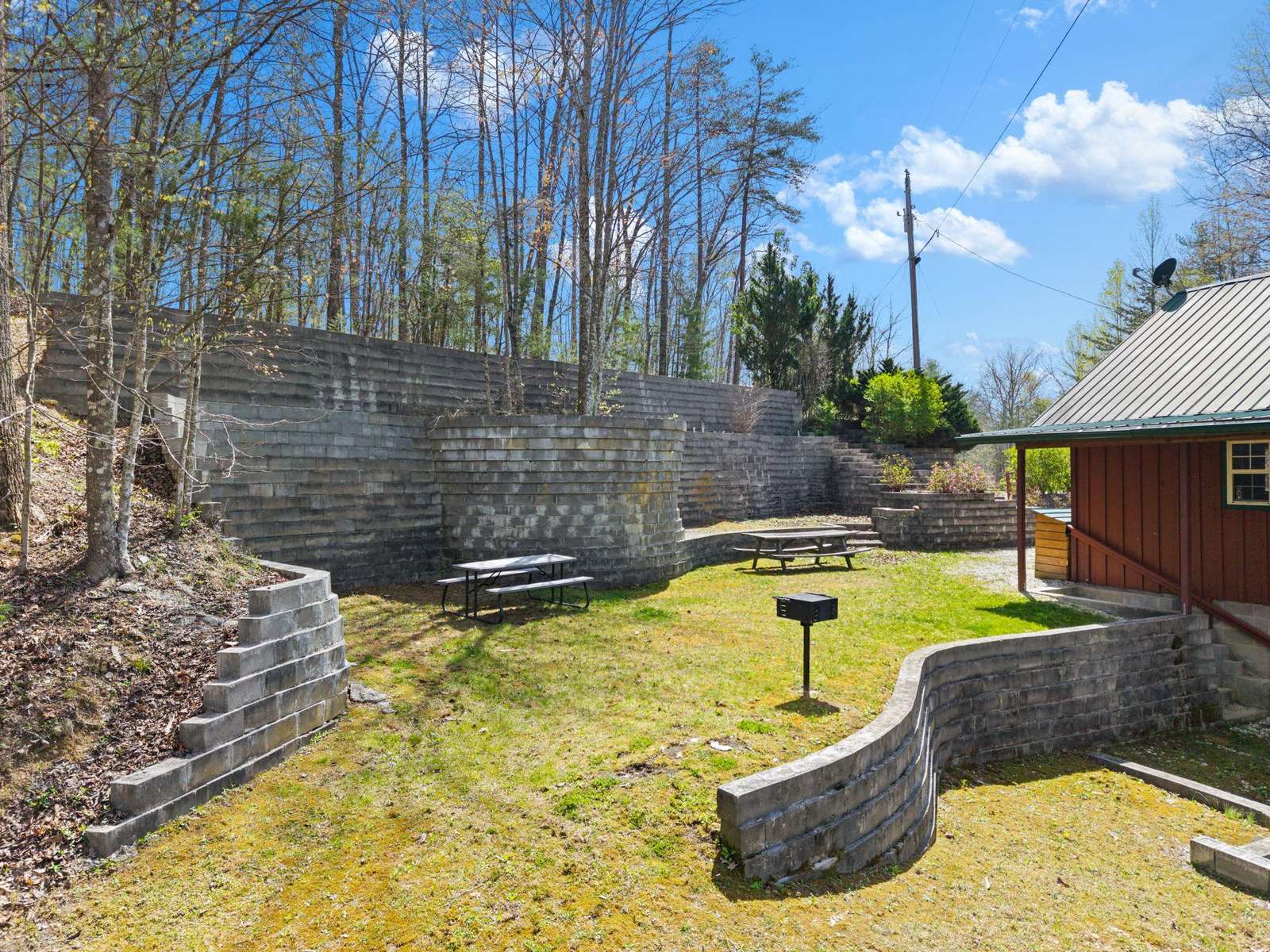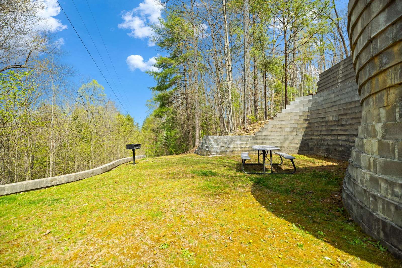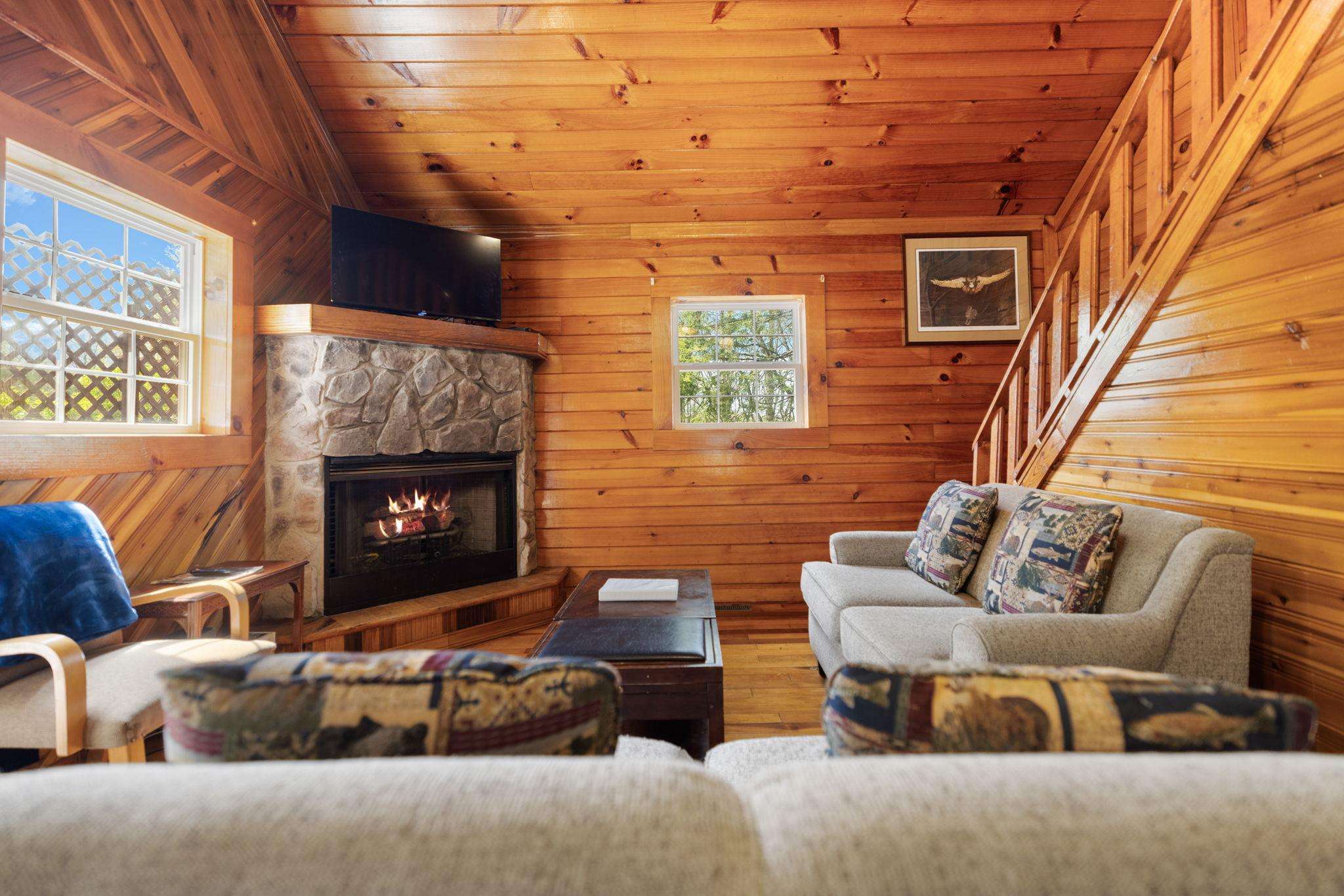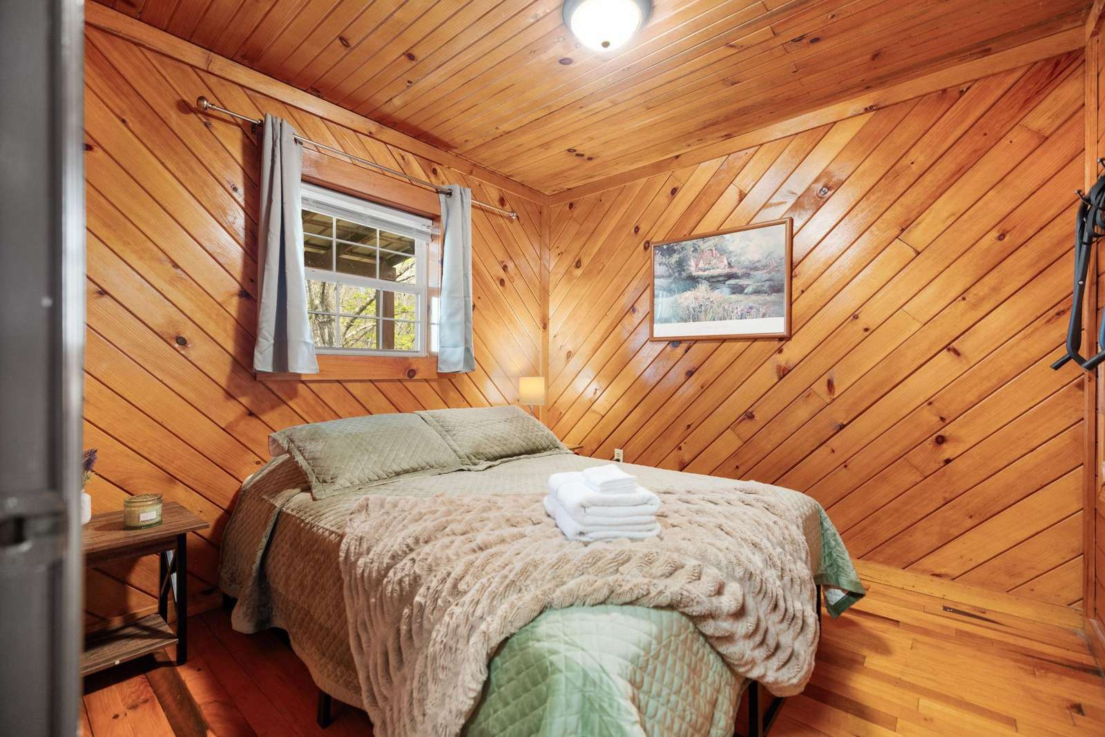 Back to Nature is a Recently Renovated Cabin highlighted by an elaborate courtyard layout weaved into the natural features of the Land giving Back to Nature a Secret Garden vibe! All new furnishings and appliances! This secluded, 3-Bed (2-private plus an open loft), 1-full BA Cabin is centrally located to all of the areas activities in Cliffview Resort. Both private bedrooms downstairs have queen beds and the open loft BR has 2 full beds. One Full bathroom has a spacious tub/shower combo. Amenities include fiber optic Wi-Fi, flat screen Smart TV, Gas Log Fireplace (for winter use), New central HVAC, Refrigerator with automatic Ice maker and Water Dispenser, dishwasher, New 6-person Hot Tub, covered private back deck, awesome fire pit, a gas grill and a park style charcoal grill for either flavor of grill master. Relax in modern comfort, enjoy the private covered porch on the back while enjoying nature or sitting by the fire pit. Cliffview Resort offers stocked ponds for fishing (catch & release) and trails for hiking and 11 miles of mountain biking trails. Harold's Lake is Cliffview's largest fishing pond, just a short walk down the hill from the cabin. Cast a line on one of the two docks.