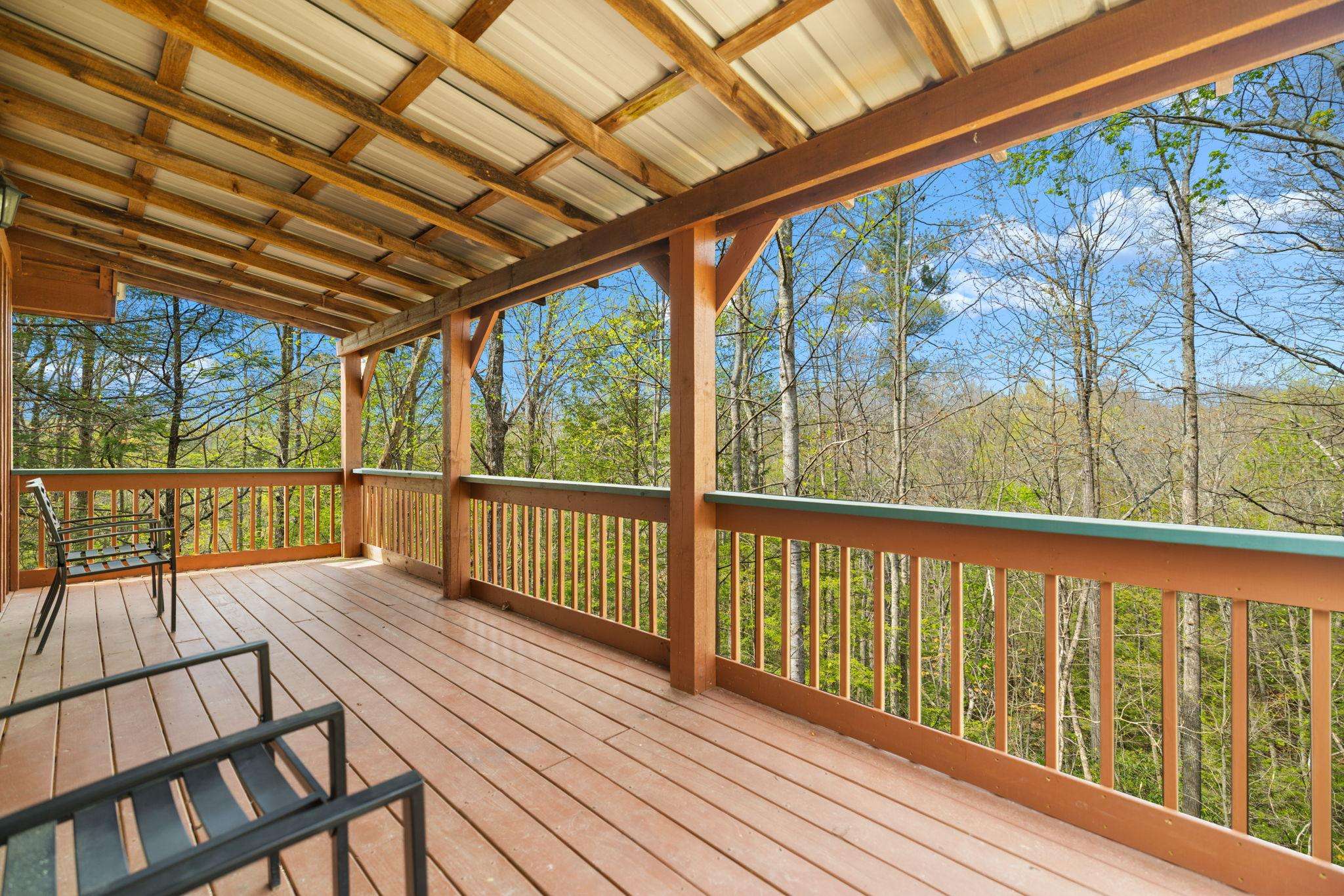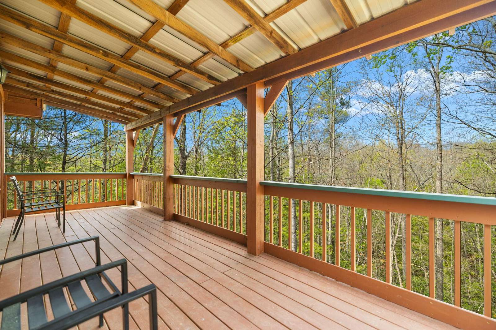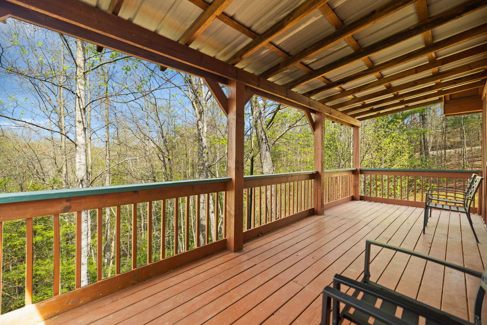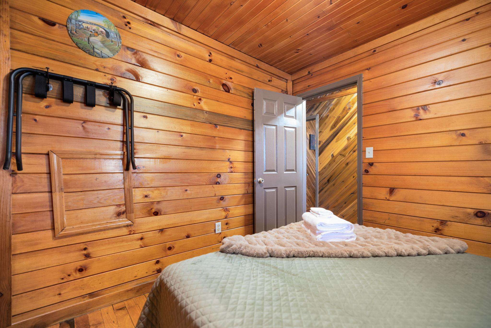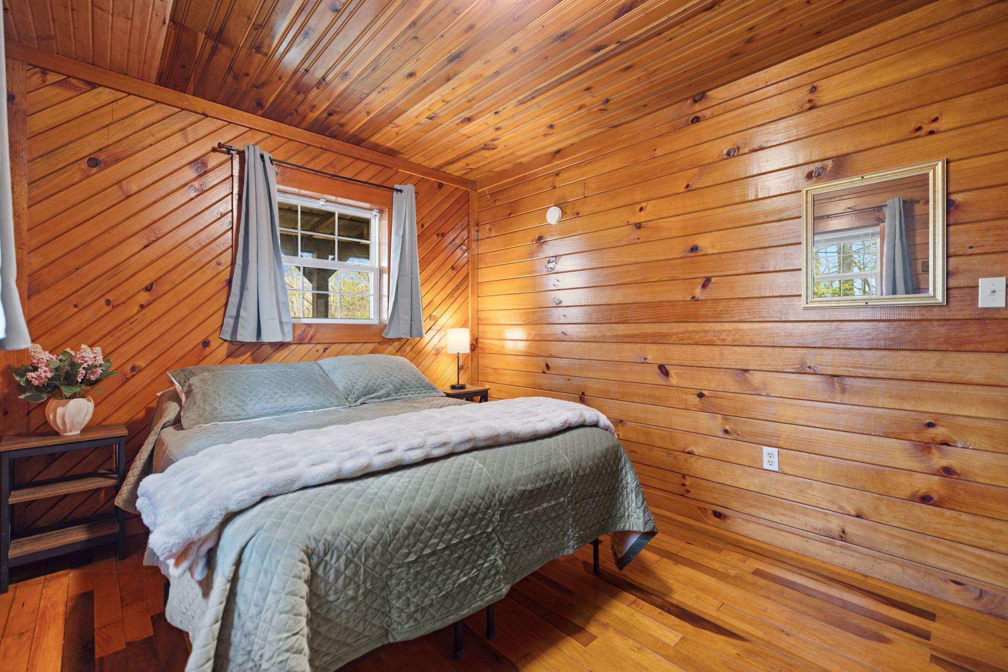 Back to Nature is a Recently Renovated Cabin highlighted by an elaborate courtyard layout weaved into the natural features of the Land giving Back to Nature a Secret Garden vibe! All new furnishings and appliances! This secluded, 3-Bed (2-private plus an open loft), 1-full BA Cabin is centrally located to all of the areas activities in Cliffview Resort. Both private bedrooms downstairs have queen beds and the open loft BR has 2 full beds. One Full bathroom has a spacious tub/shower combo. Amenities include fiber optic Wi-Fi, flat screen Smart TV, Gas Log Fireplace (for winter use), New central HVAC, Refrigerator with automatic Ice maker and Water Dispenser, dishwasher, New 6-person Hot Tub, covered private back deck, awesome fire pit, a gas grill and a park style charcoal grill for either flavor of grill master. Relax in modern comfort, enjoy the private covered porch on the back while enjoying nature or sitting by the fire pit. Cliffview Resort offers stocked ponds for fishing (catch & release) and trails for hiking and 11 miles of mountain biking trails. Harold's Lake is Cliffview's largest fishing pond, just a short walk down the hill from the cabin. Cast a line on one of the two docks.