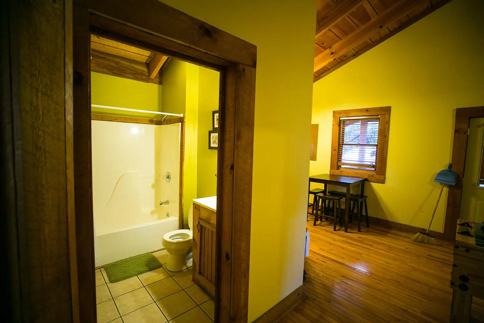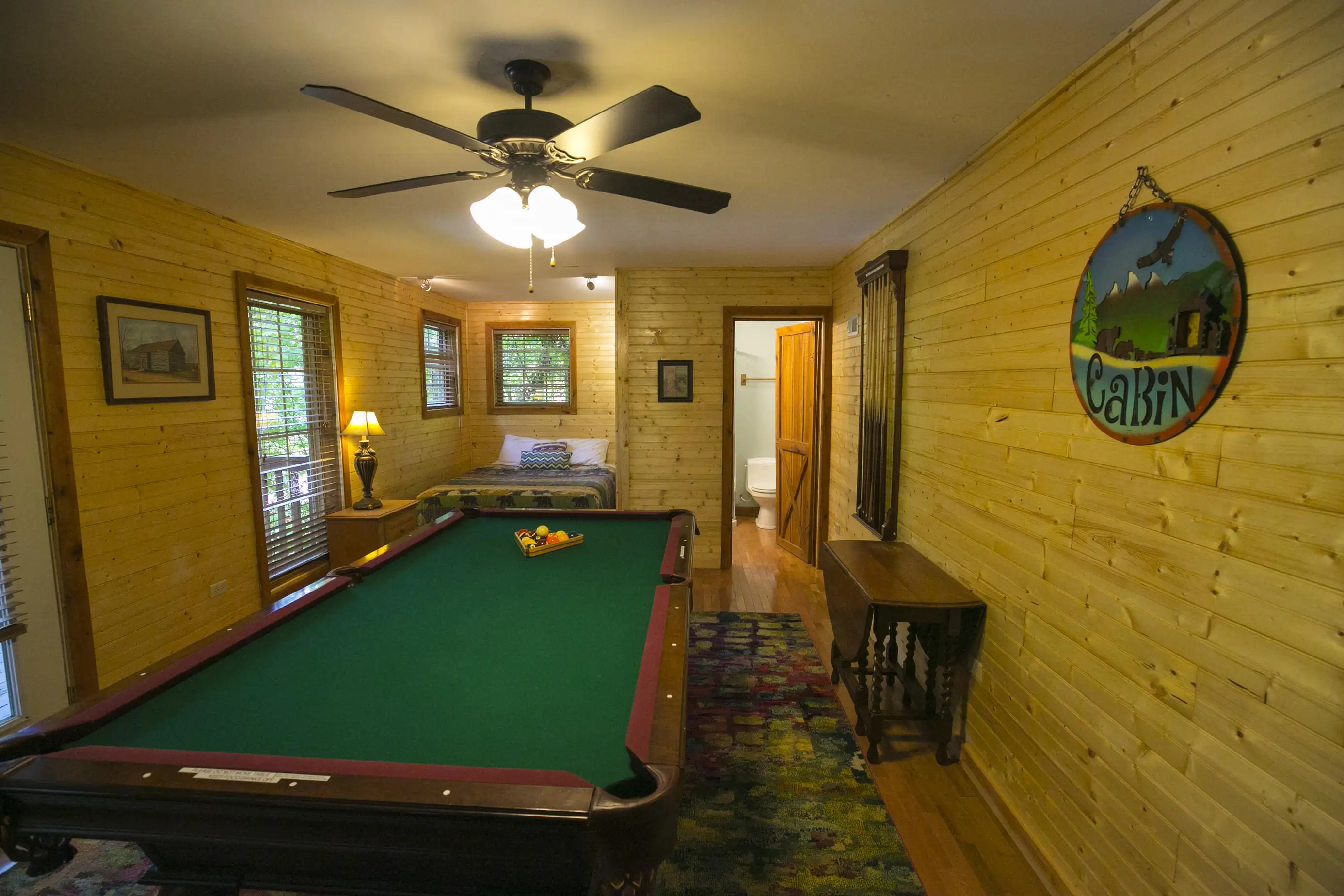 The downstairs is a Game Room has a Slate Pool Table, Flat screen Satellite TV, and large windows to take in the scenery while staying cozy and shooting pool. The Game Room also has a queen bed and has an adjacent full bathroom. Please be considerate of our pool table by never: setting drink glasses down on it, using it for dining or beer pong, or attempting to move it so everyone can enjoy it.