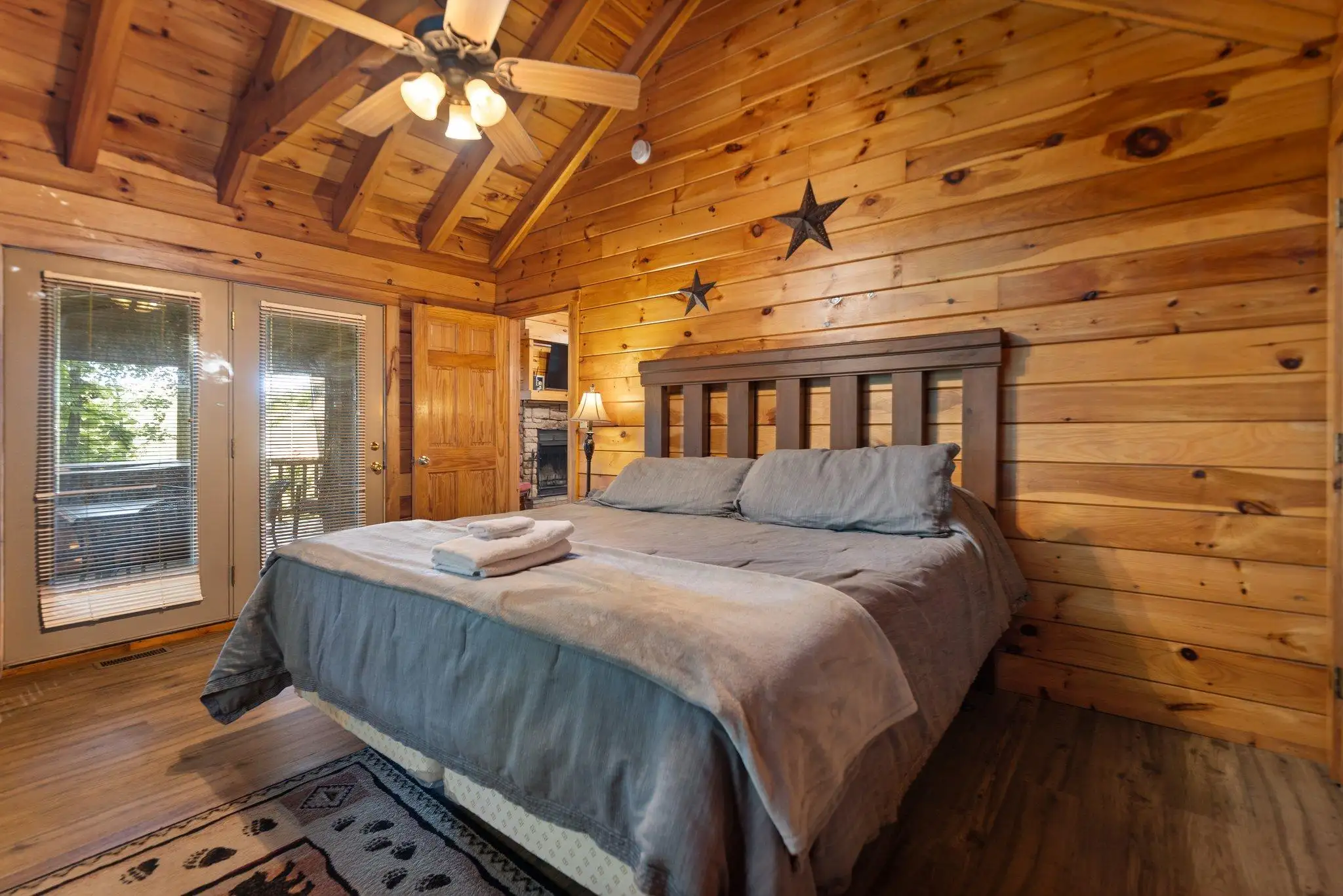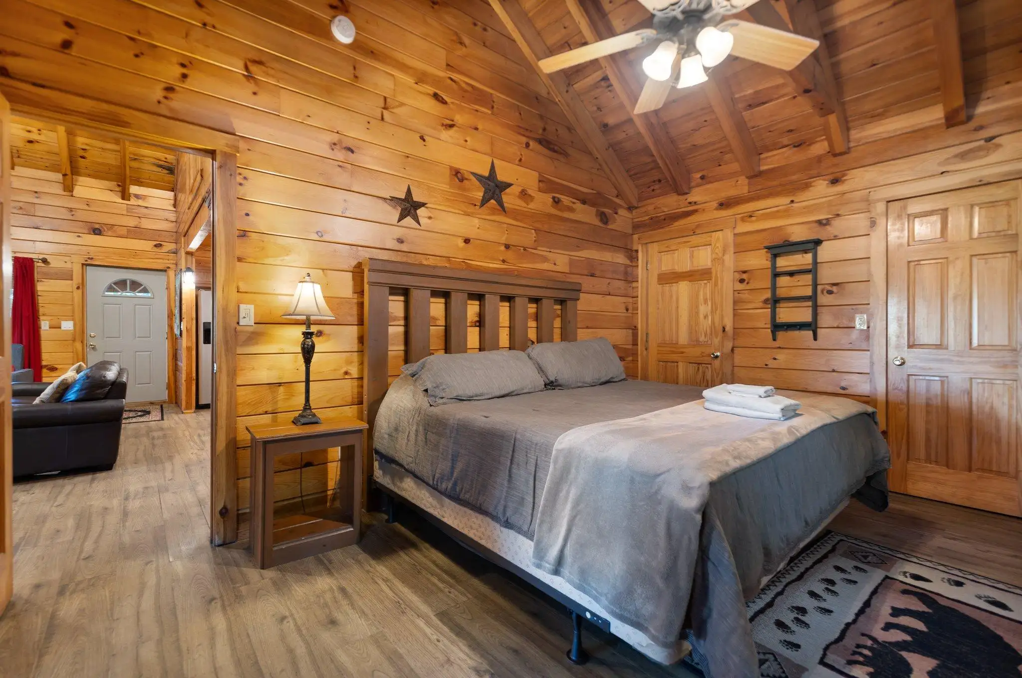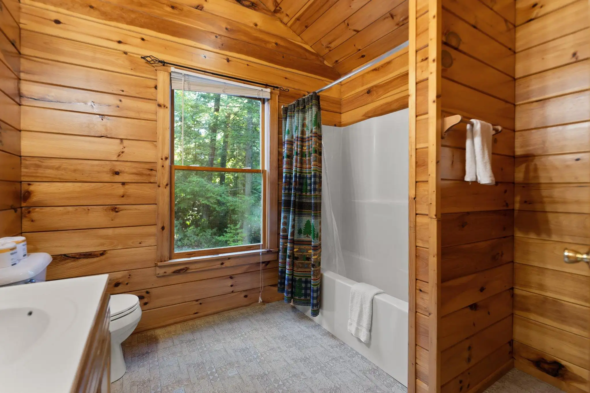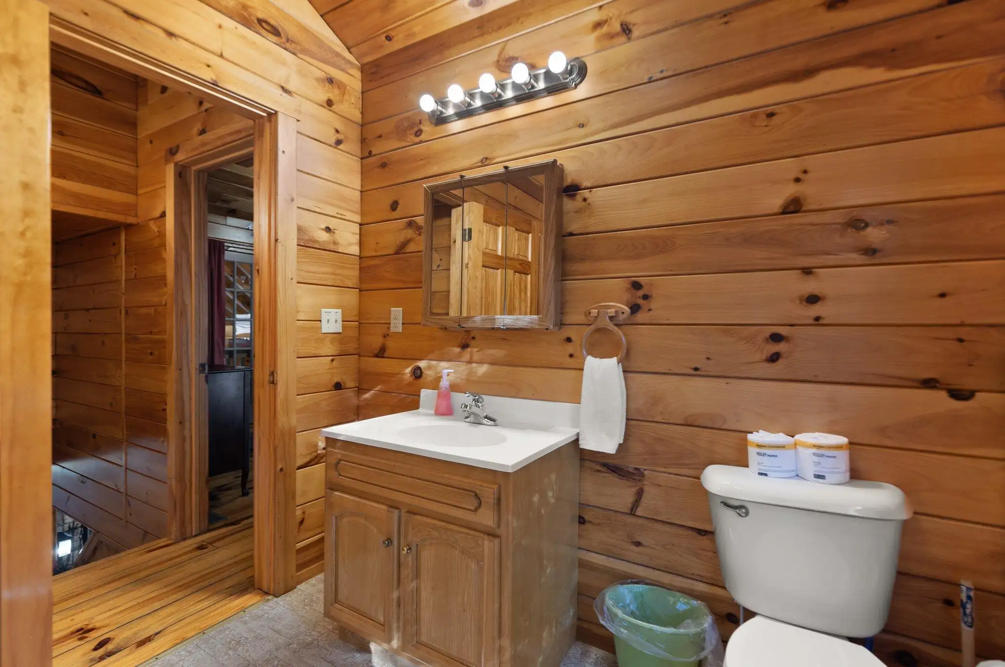 Nestled in a scenic backdrop with captivating mountain valley view! This beautiful vacation log cabin is picturesque in a fairly secluded corner of Scenic Heights Resort. (No cabins within view from the deck). Close to both Natural Bridge State Park and the Red River Gorge. This modern 3-BR, 2-BA cabin sleeps up to 8 , has a large flat screen satellite TV on main floor, an indoor/outdoor sound system, fiber optic Wi-Fi, washer/dryer, gas grill, outdoor fire pit, dishwasher, wood burning fireplace, central heat/AC,5-person hot tub & foosball table upstairs. Master BR has a king bed and a Jack-N-Jill bathroom shared with main floor and the second BR which has a king bed. Upstairs is a third BR which has a twin bunk bed with trundle and small twin built into the wall so this room can sleep up to 4 young people!. The wall twin bed is only accessible by a ladder. YOUNG CHILDREN MUST BE SUPERVISED WHEN ON LADDER. (Scenic Cabin Rentals not responsible for injuries incurred by the bunk bed) The Upstairs BR also has a flat screen TV for gaming with Blu-Ray/DVD player (The main living room TV is the only one with satellite TV) and has a private balcony. The top floor has a full bath with tub/shower to make bath time for 4 kids a splash! All will enjoy a great time grilling out on the covered wrap around deck listening to music on the sound system, or sitting in the outdoor hot tub with seating for 5 while soaking in the spectacular view. It is no wonder people leave feeling relaxed and refreshed. This beautiful log home and area makes a perfect honeymoon destination. Visit Red River Gorge, Kentucky and relax at Bobcat Lodge in the Scenic Heights neighborhood area!