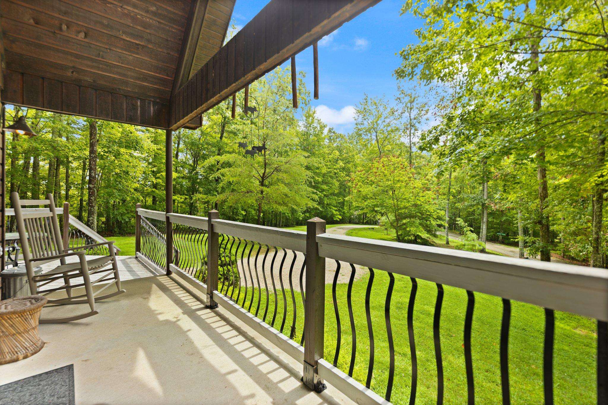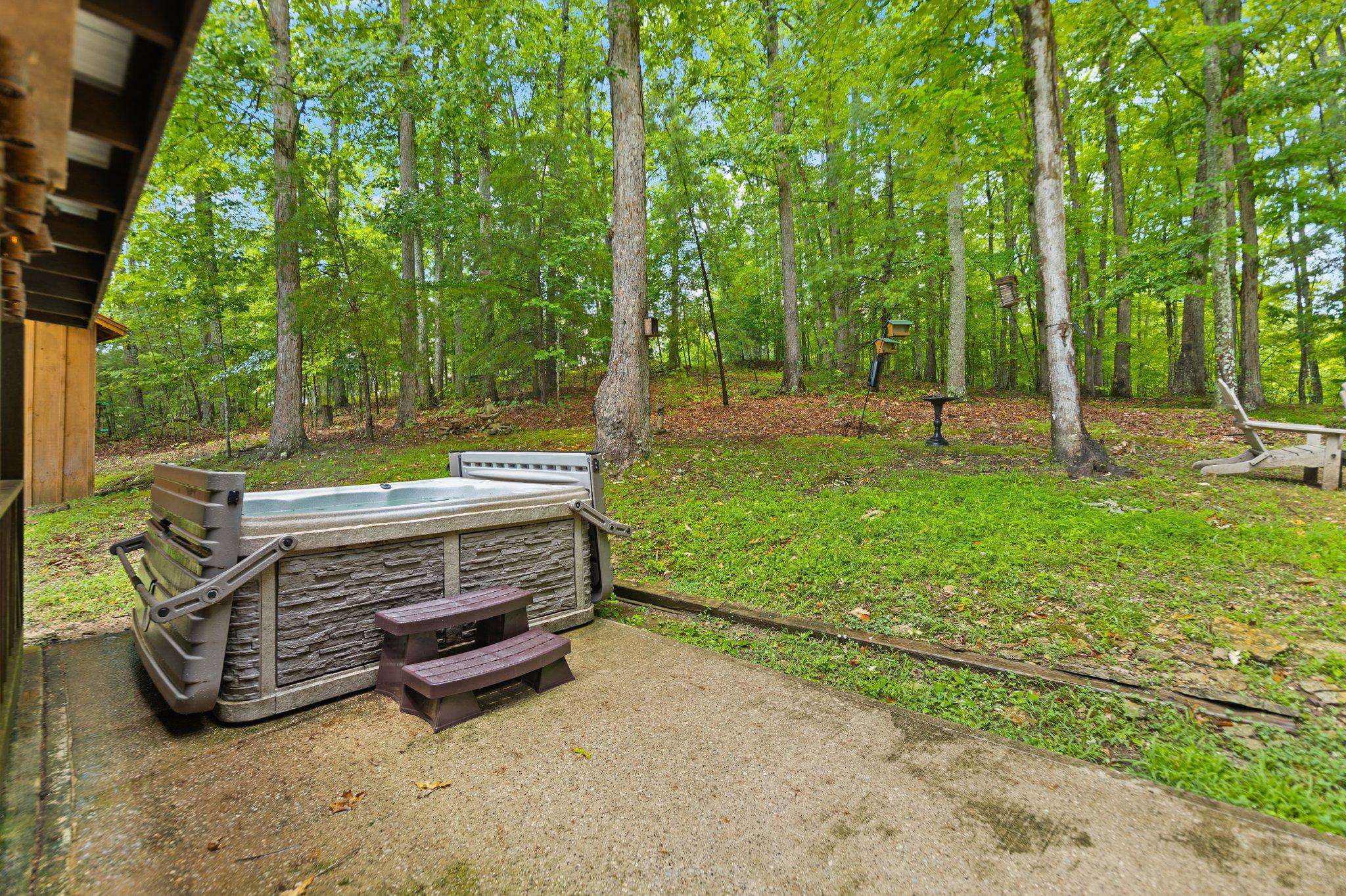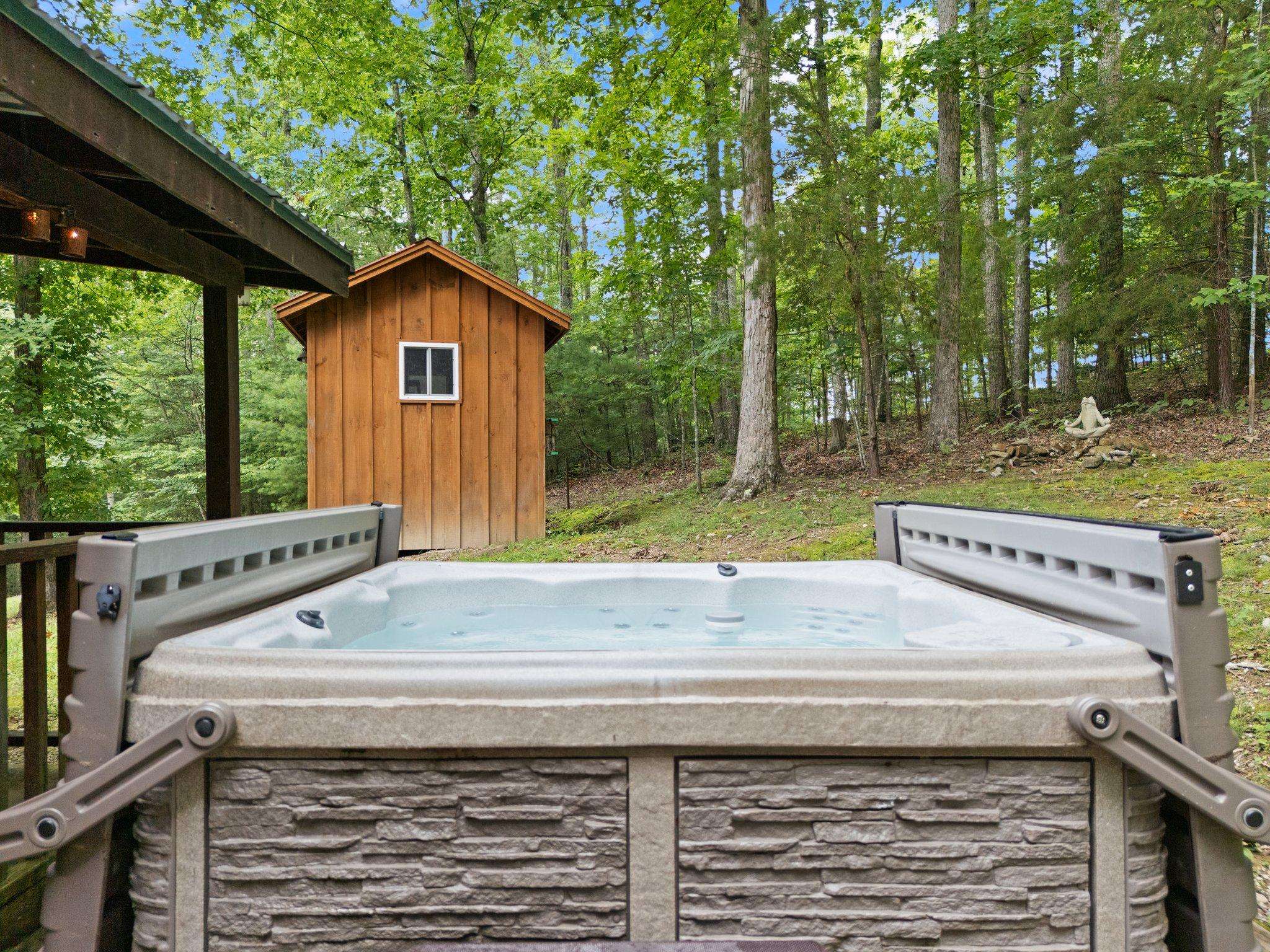 Outside is a covered patio area with a table for dining or lounging. The Hot tub has seating for everyone! The Gas Grill is plumbed in to natural gas for worry free endless grilling. The fire pit sits right behind the grill so everyone is within ear shot. The covered front porch has lounge and rocking chairs perfect for taking in the view over coffee or enjoying the sunset with cocktails.