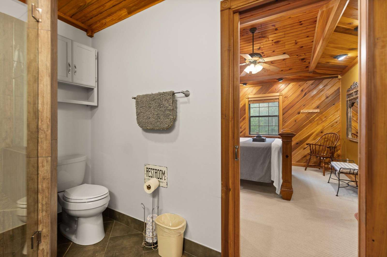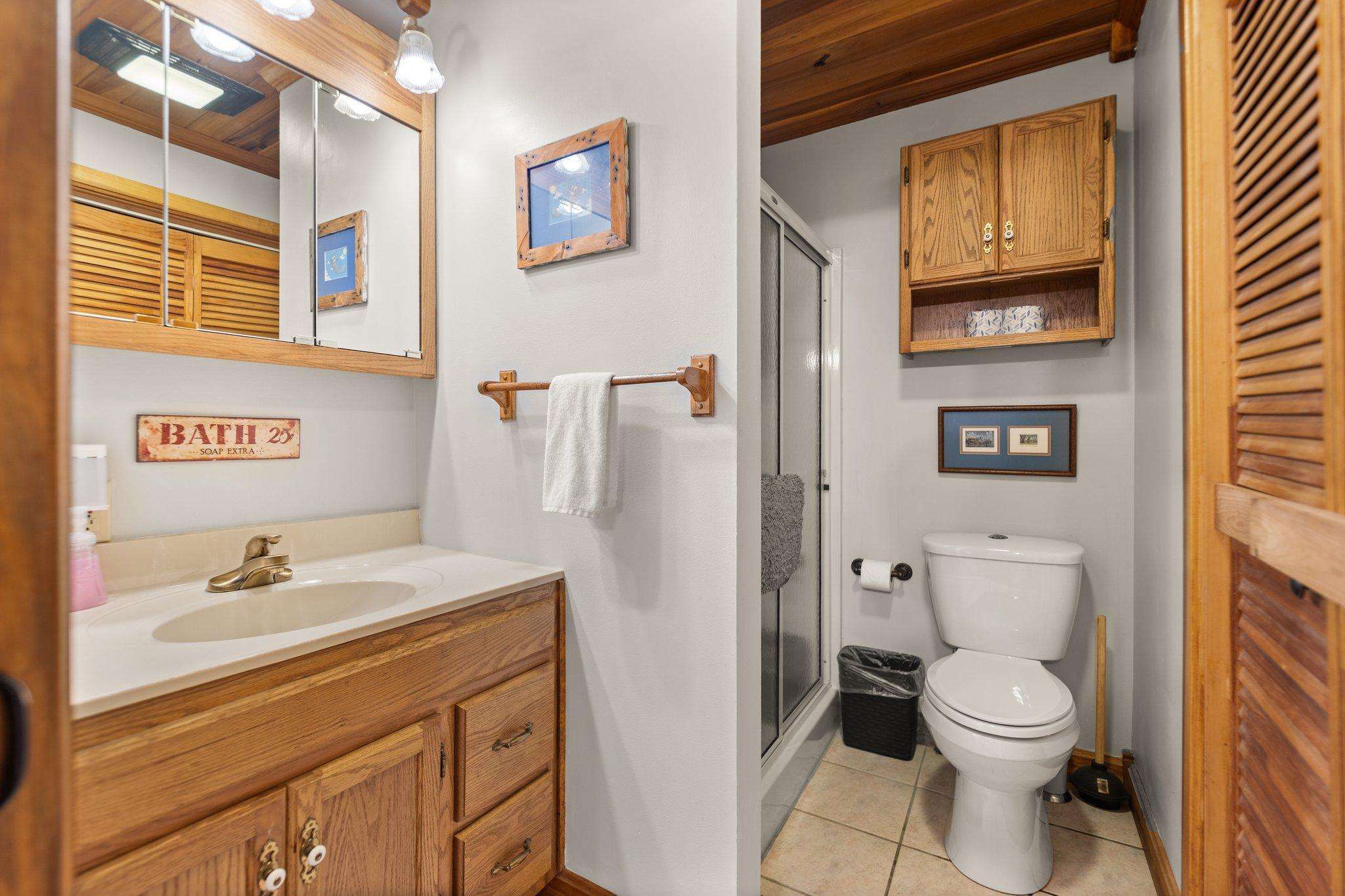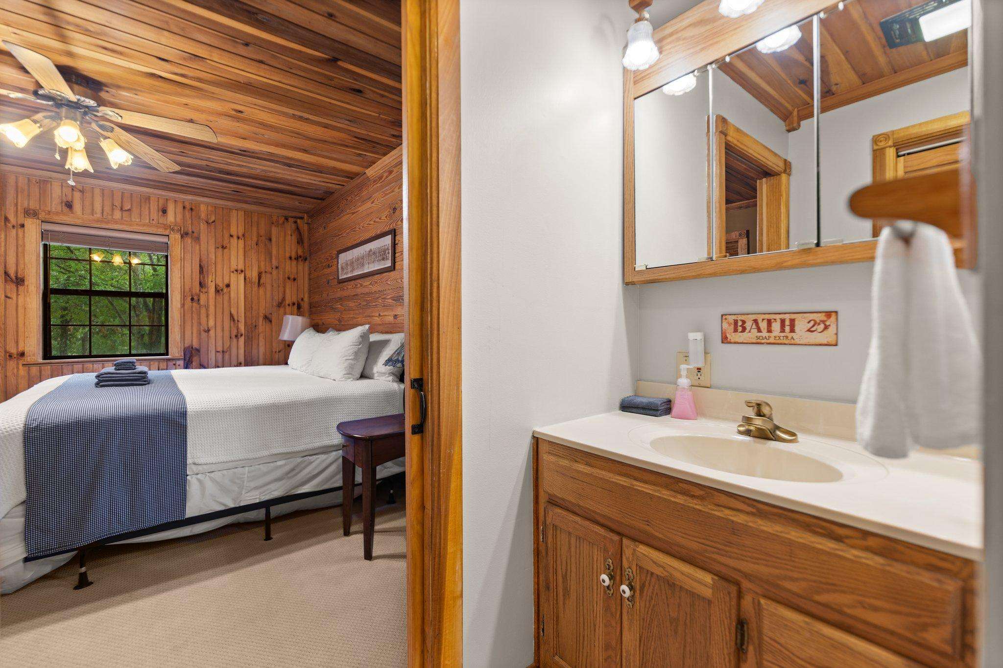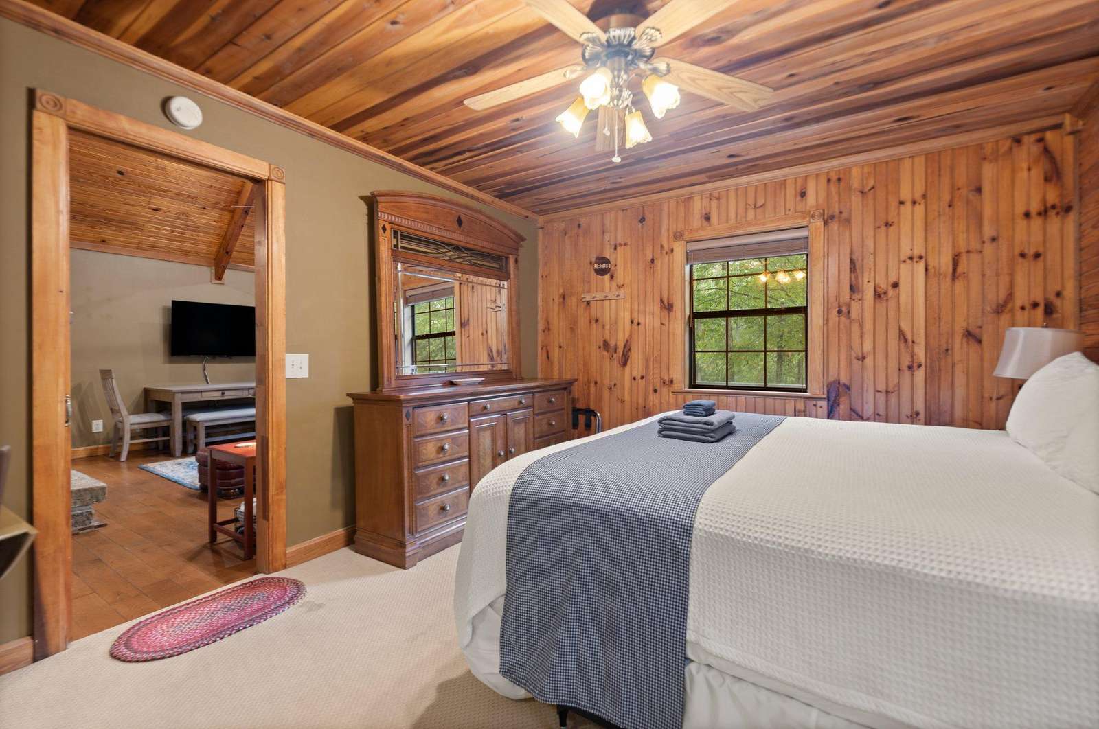 For those looking for extended stays, this cabin also has a laundry facility with full sized appliances. A table and chair furnished in the king bedroom doubles as a work desk for remote work should duty call. The Queen bedroom has a closet with shelving and a coat rack. Both Bathrooms are equipped with heaters for added comfort!