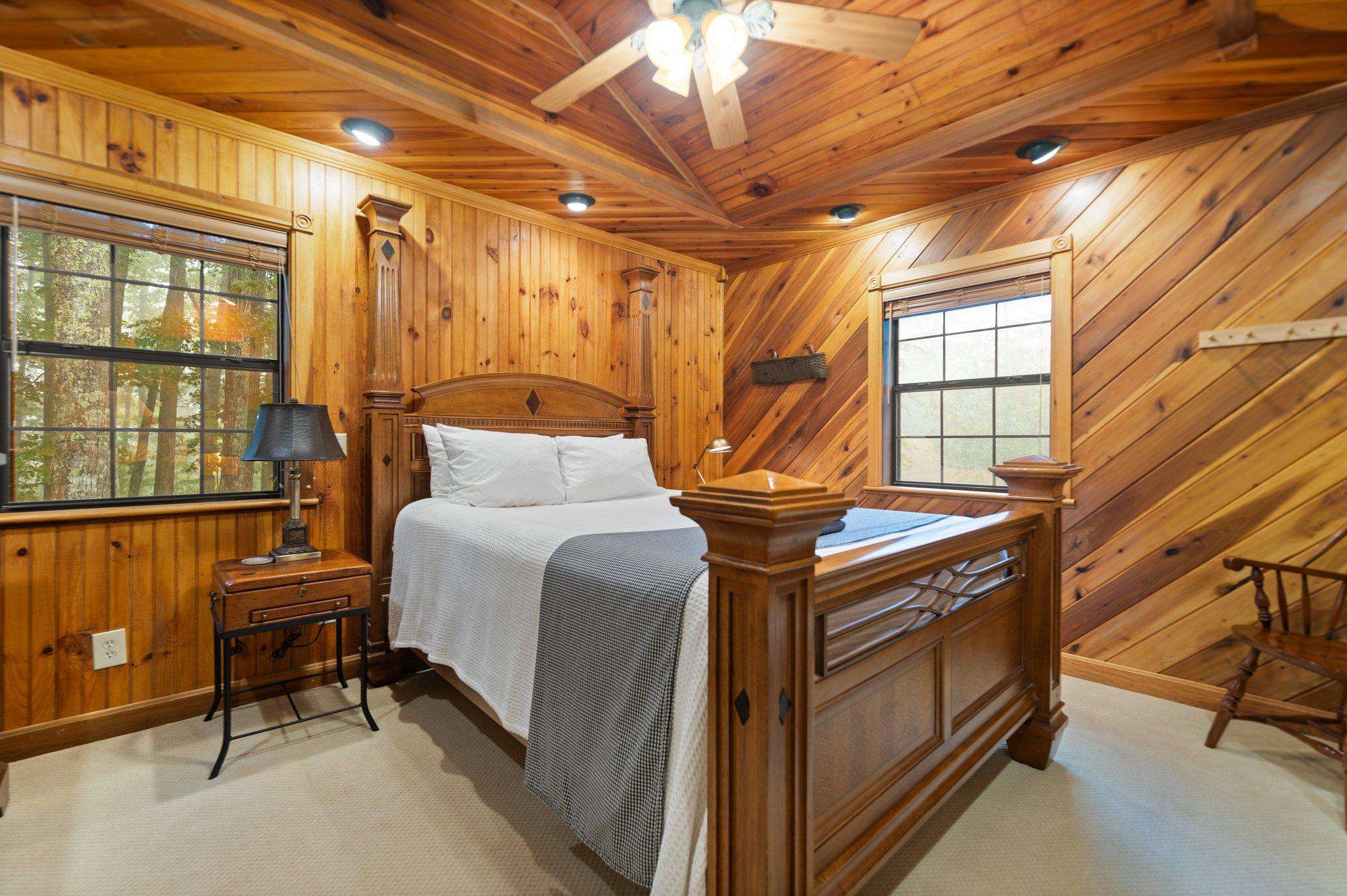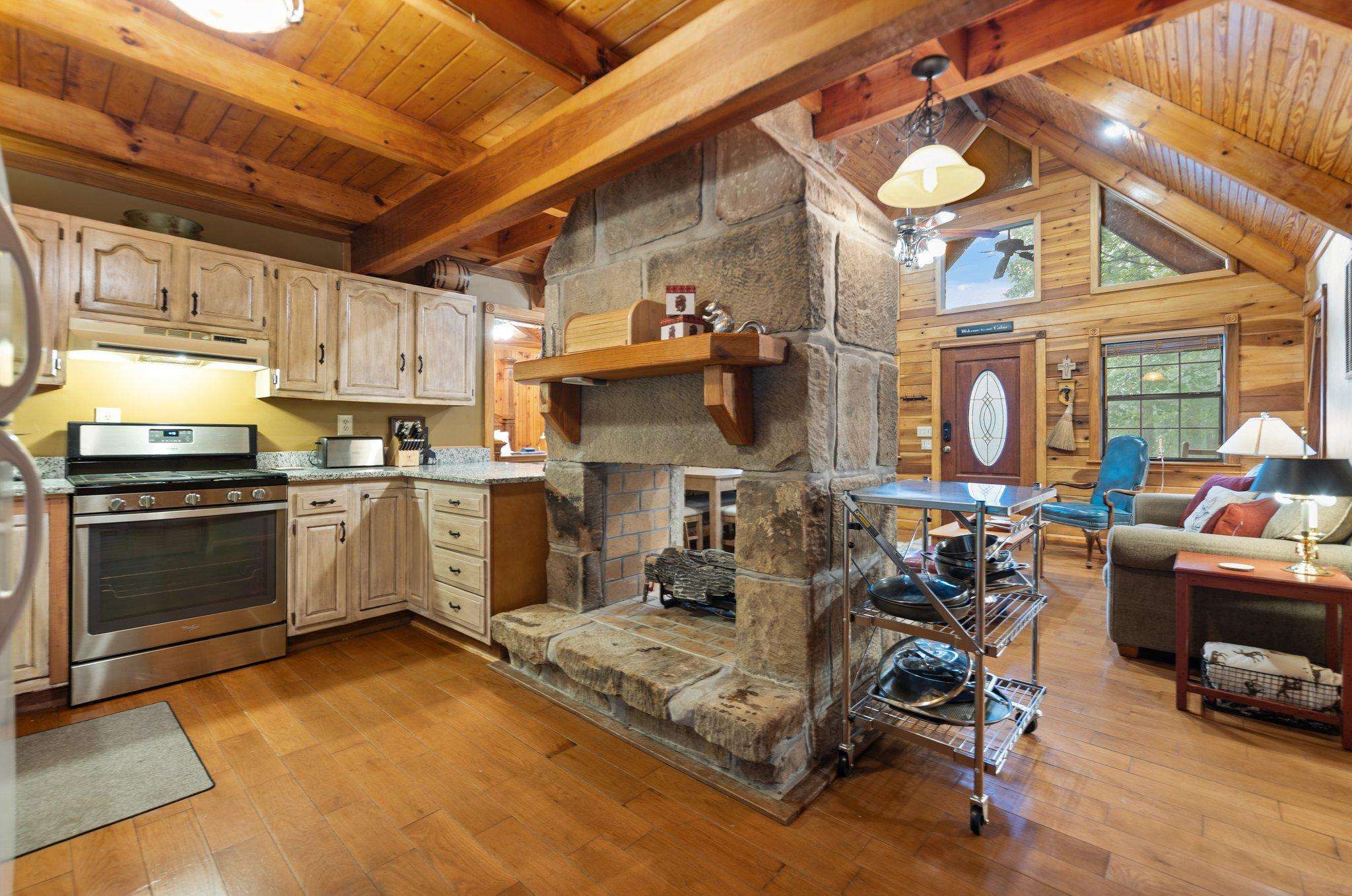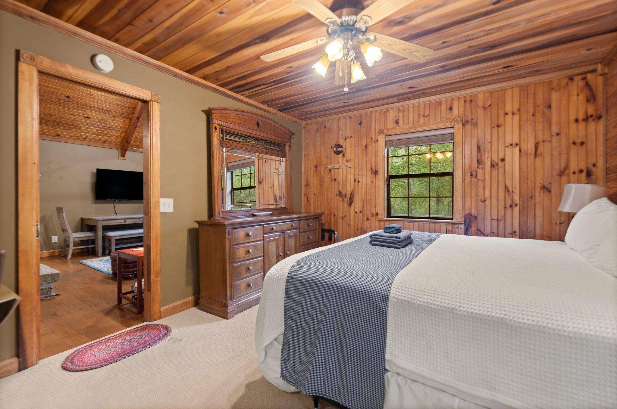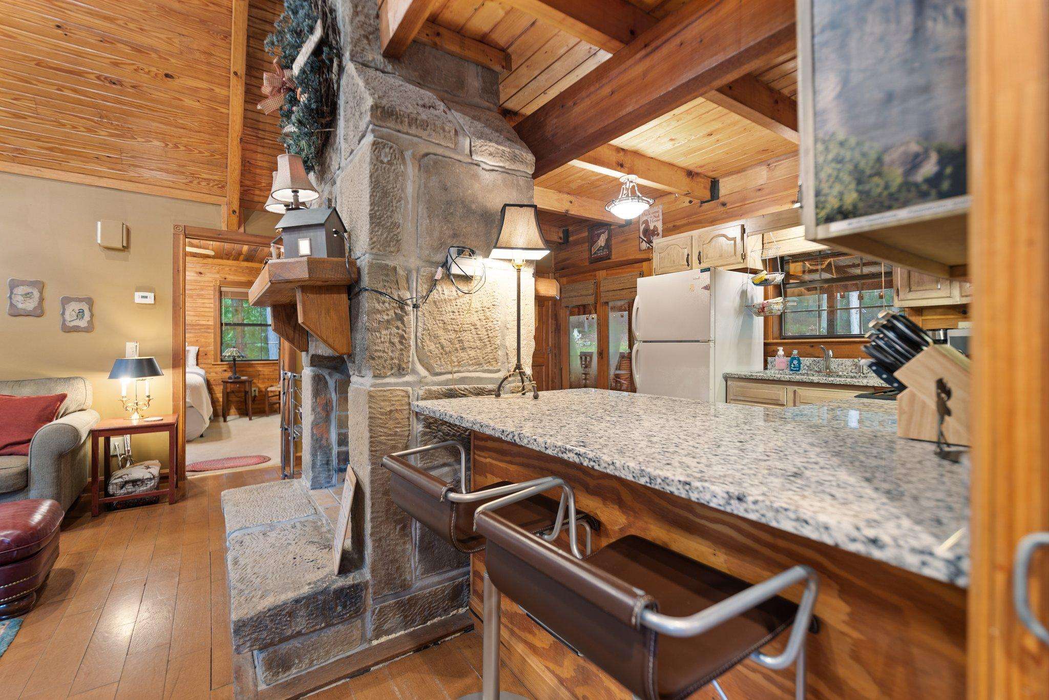 This gorgeous cabin is entering rental life for the first time after being a private 2nd home so everything is top notch and is very well cared for. No expense was spared outfitting the furnishings. This two bedroom cabin is as nice as they come. Centered on a gorgeous towering stone see-thru fireplace, extensive ironwork which is rare for cabins in the area. This Cozy cabin is secluded in a spacious private setting in the gated community of Cliffview Resort.