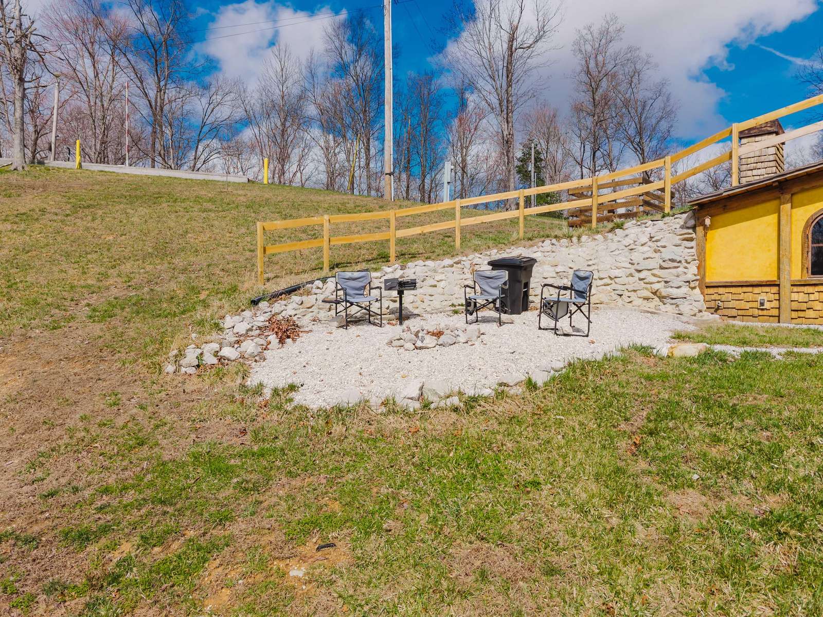 Outside is a park style charcoal grill, built in campfire pit with seating for toasting s'mores and an outdoor dining picnic table to enjoy the nice sunset view. Red Hobbit has a great view of the night sky.
