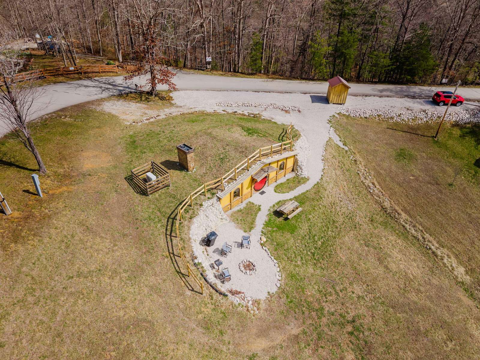 Centrally located to all of Red River Gorge's activities including Redpoint BBQ, Rockhouse, climbing areas Muir Valley, Cliffview Preserve, Beer Trailer Crag, Roadside, coffee shop boulder area, and Ash Branch. The sign-up office for The Red River Gorge Zip-Line, Off Road Jeep & side-by-side tours, and Cliffview Cafe are all a short walk from Red Hobbit. Hollerwood Off-road Park is a short drive away.