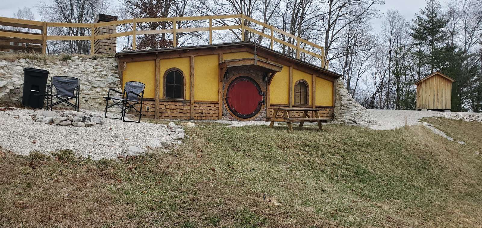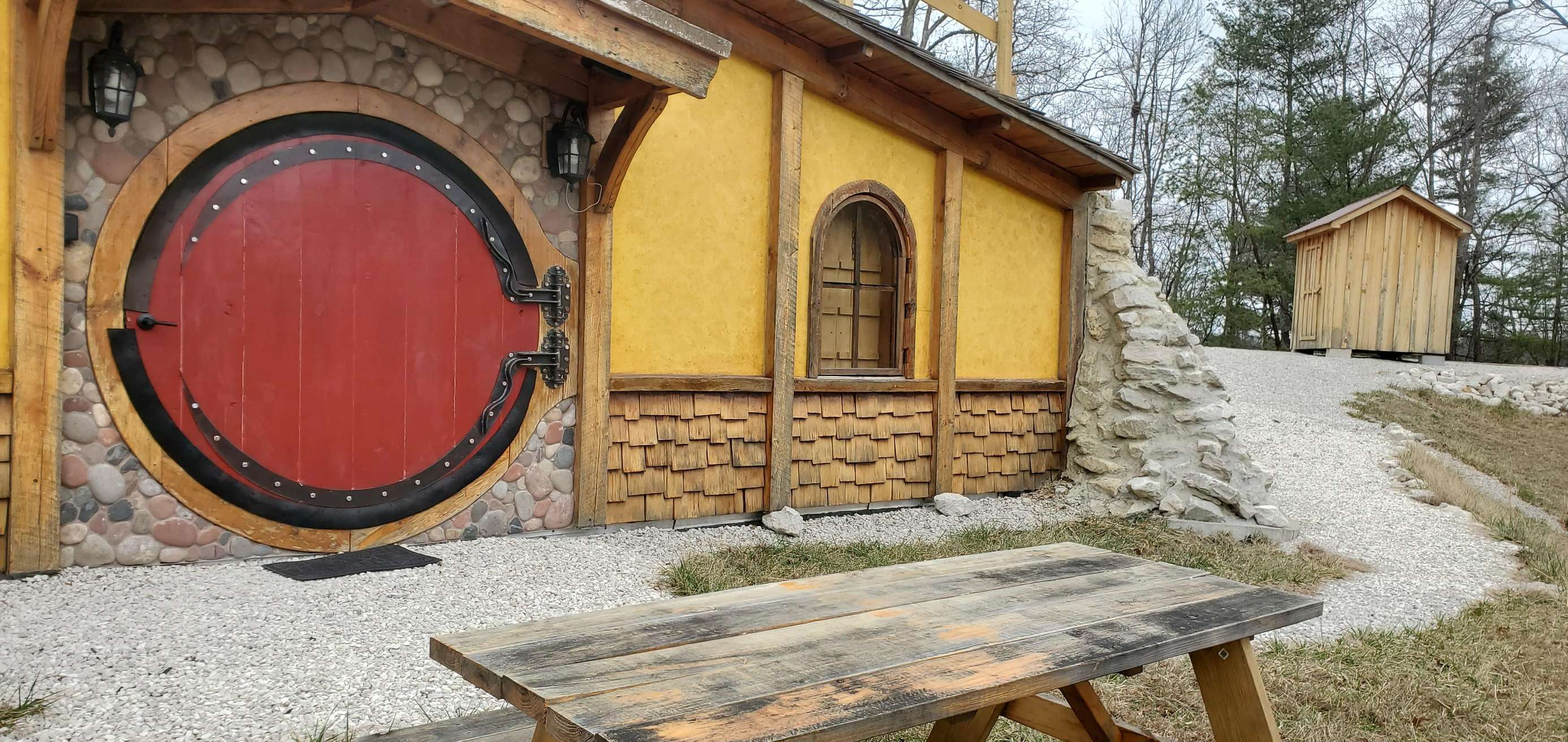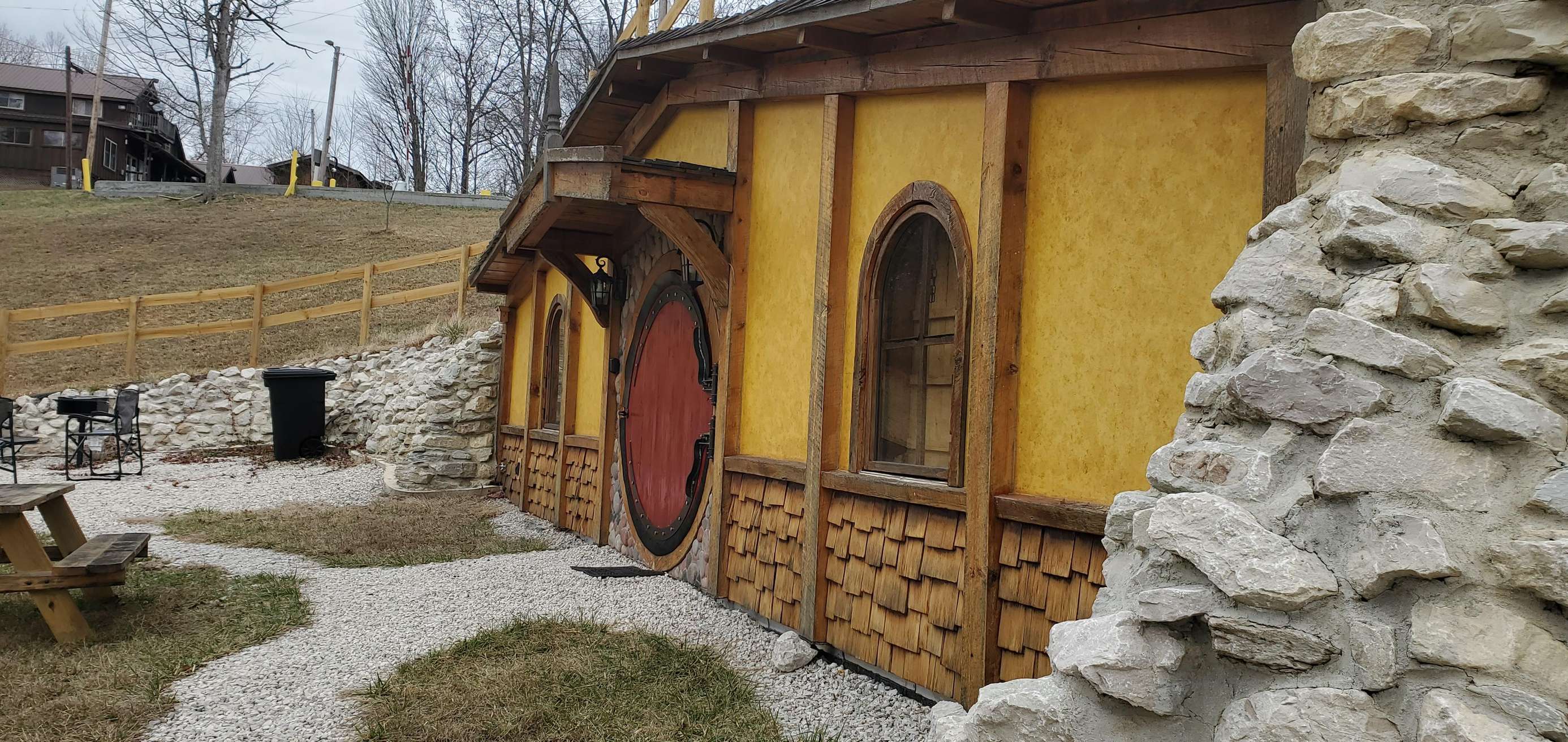 The home every fantasy-con has been looking for. Red Hobbit of Cliffview Resort is an experience of whimsical enchantment. Perfect for 2 couples or a single family with young kids. Centrally located, explore Middle-Earths Red River Gorge through the lens of Frodo and Bilbo Baggins in a real earth-shelter dwelling with modern amenities for an unforgettably unique experience! with a raised ceiling of course. Perfect for guests who wish to avoid wild goose-chase directions and narrow windy back-roads. Directions to this house are as easy as they come.