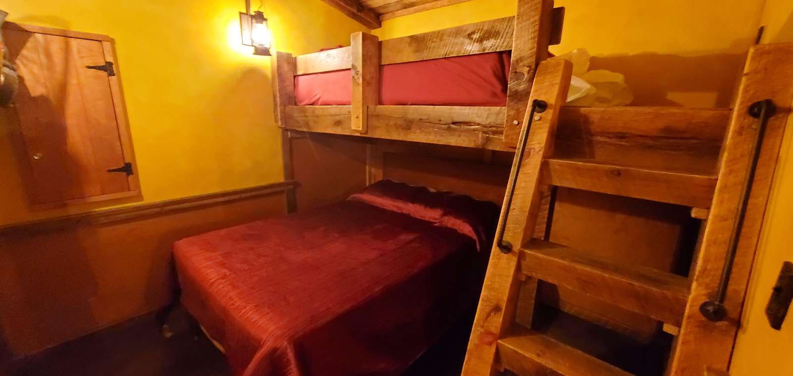 One private bedroom has a queen memory foam bed, the 2nd private bedroom has a hand built twin over full bunk bed. Both are memory foam, and share the beautiful full bathroom with amazing step-in tile shower with a large rain shower head and hand wand.