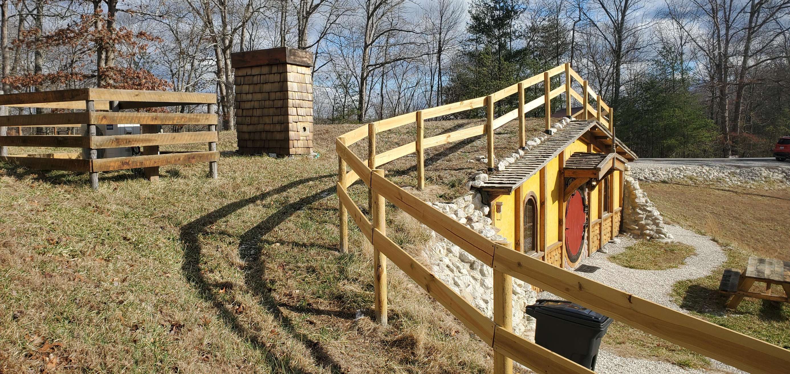 The home every fantasy-con has been looking for. Red Hobbit of Cliffview Resort is an experience of whimsical enchantment. Perfect for 2 couples or a single family with young kids. Centrally located, explore Middle-Earths Red River Gorge through the lens of Frodo and Bilbo Baggins in a real earth-shelter dwelling with modern amenities for an unforgettably unique experience! with a raised ceiling of course. Perfect for guests who wish to avoid wild goose-chase directions and narrow windy back-roads. Directions to this house are as easy as they come.