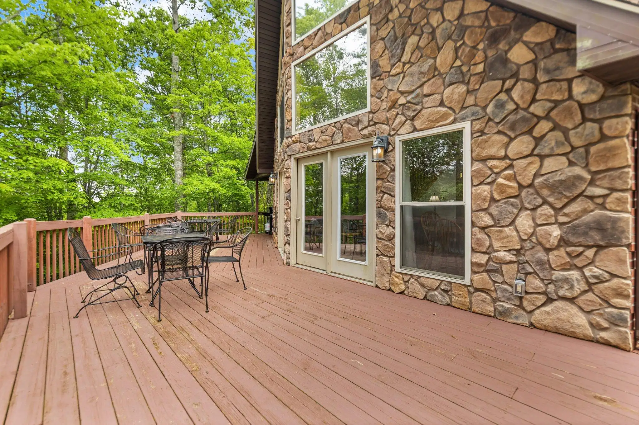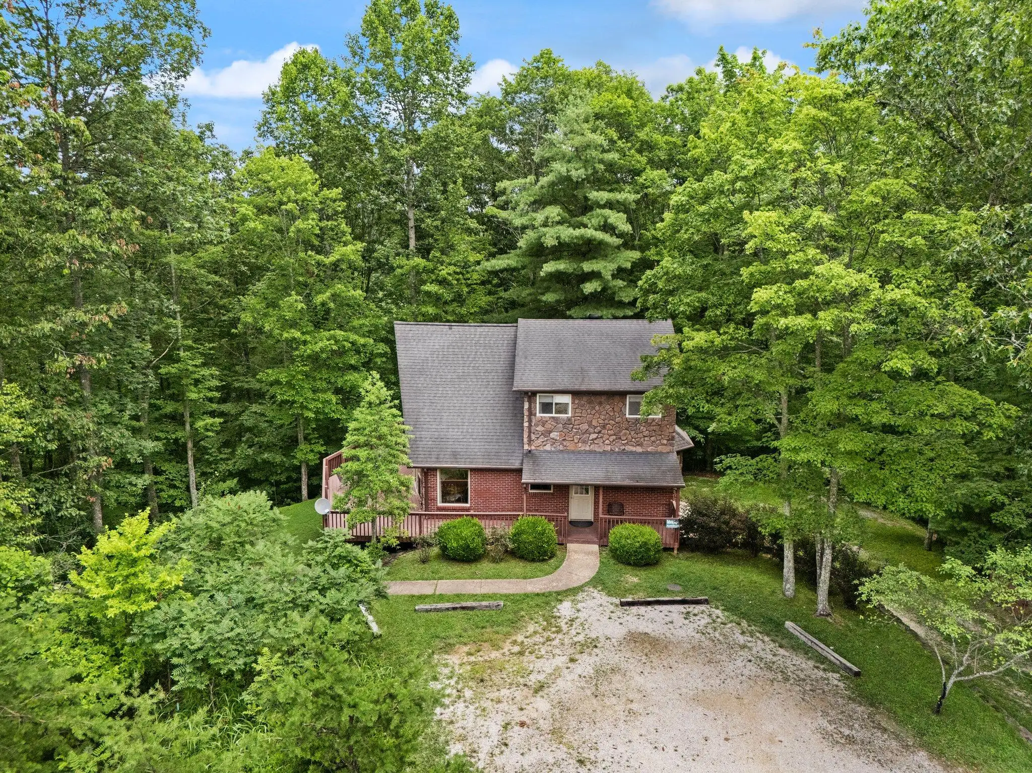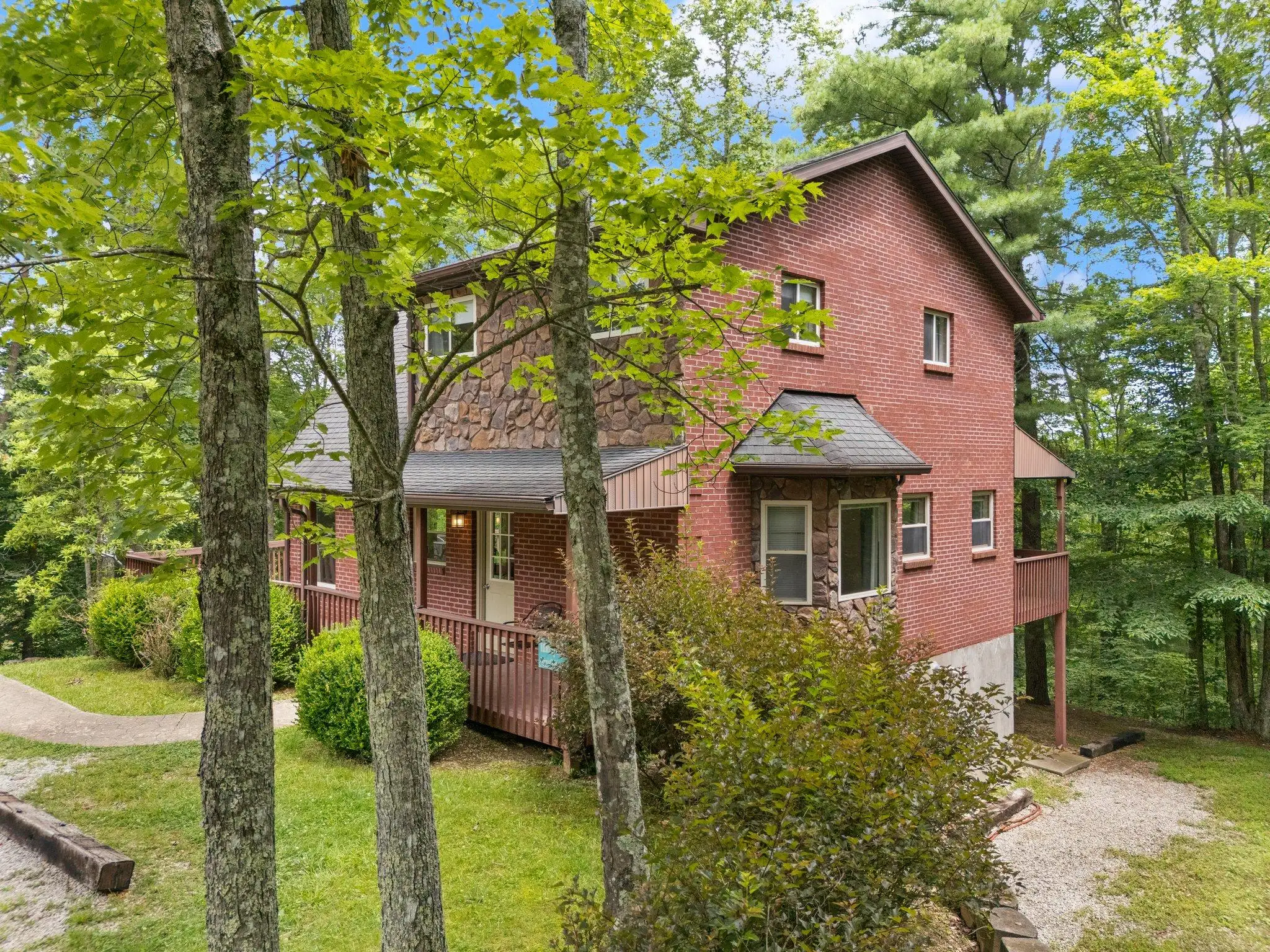This brick and stone 4-BD, 3-BA, 3-story house sleeps up to 12. Has 3-BR, with a 4th sleeping area in the Lower Level den with a queen bed. 3-BA. It features a private dock for swimming, fishing laying out, and kayaking!