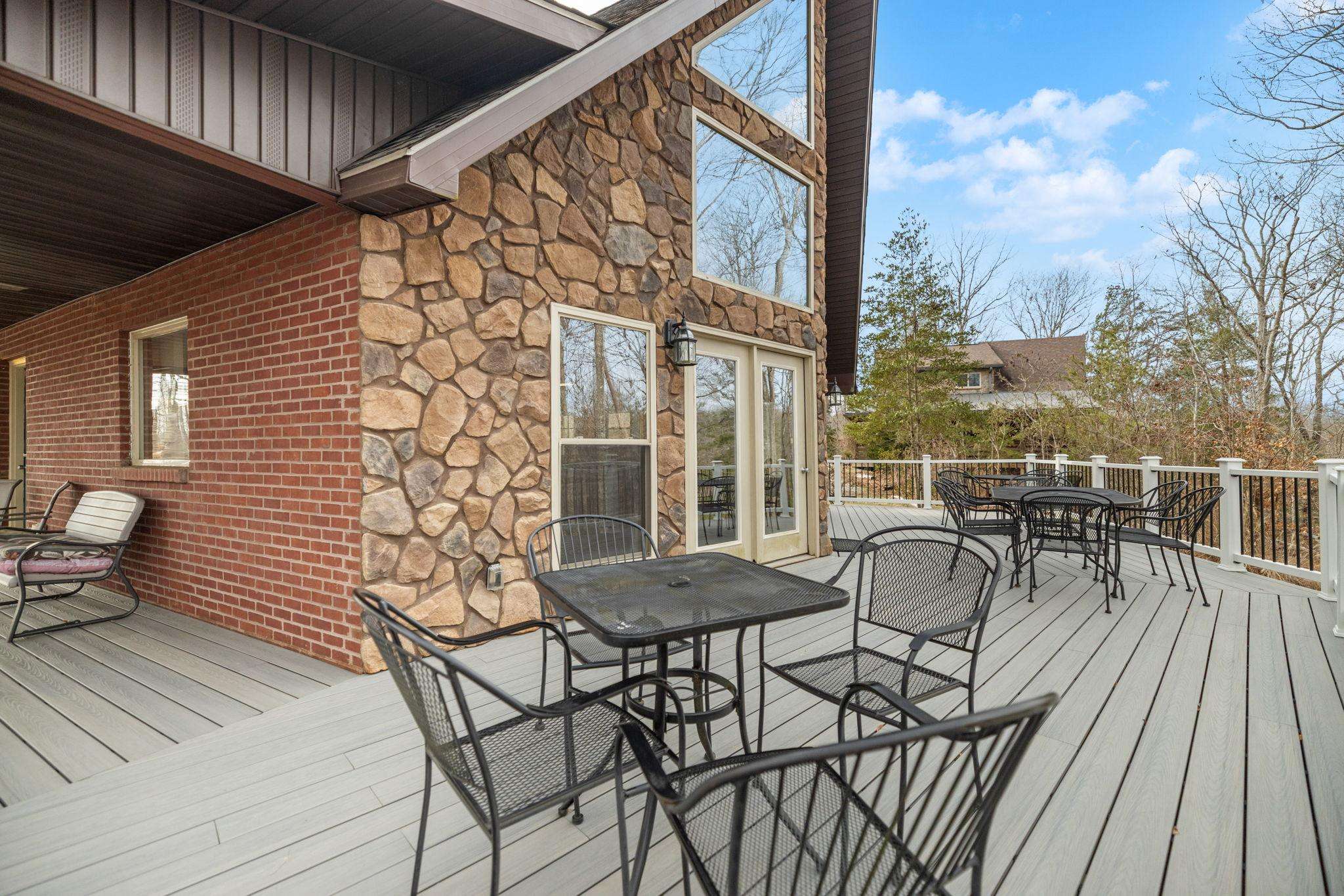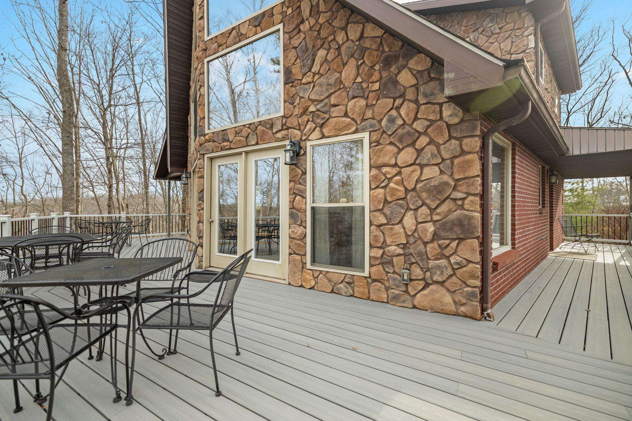 This brick and stone 4-BD, 3-BA, 3-story house sleeps up to 12. Has 3-BR, with a 4th sleeping area in the Lower Level den with a queen bed. 3-BA. It features a private dock for swimming, fishing laying out, and kayaking!